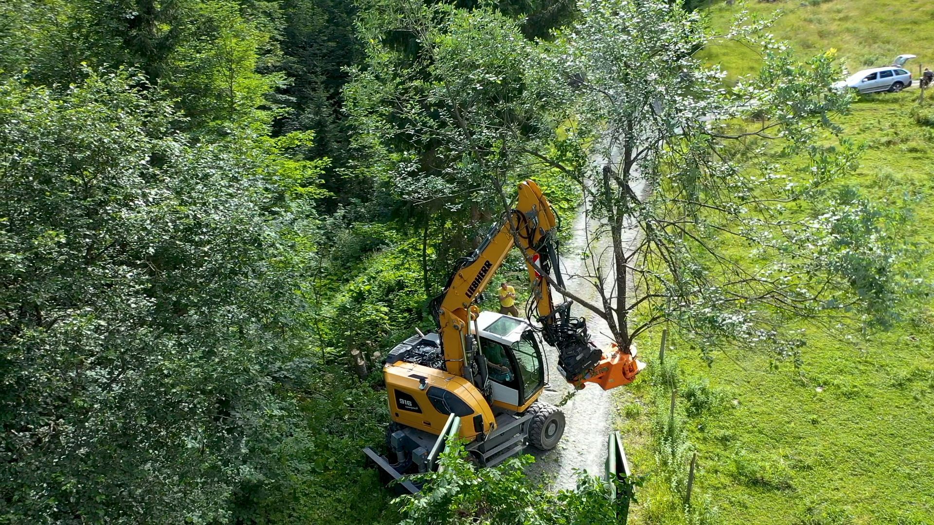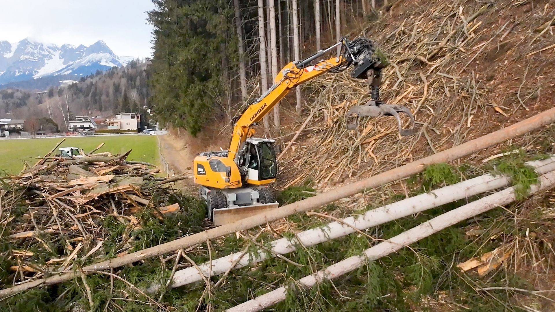 (auch im extremen Gelände möglich, durch den hydraulischen Antrieb des Holzanhängers) - Problembau-Abtragungen